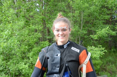 Jeanette Hegg Duestad fra Sem skytterlag skjøt 349 i første lag hos Frogn og Drøbak i dag. Hun har skutt 350 hele 5 ganger i år og 20 ganger i fjor, men sier med et smil at 349 er helt greit. Det er i alle fall nok til å ta ledelsen i juniorklassen!