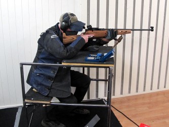 - Her i Øvre har jeg med meg prototypen til utprøving, og det trengs nok litt justeringer både her og der. Men at dette er noe for oss som sliter med å skyte liggende med stiv nakke, er jeg overbevist om. Og som kjent skyter veteranene kun i liggende.