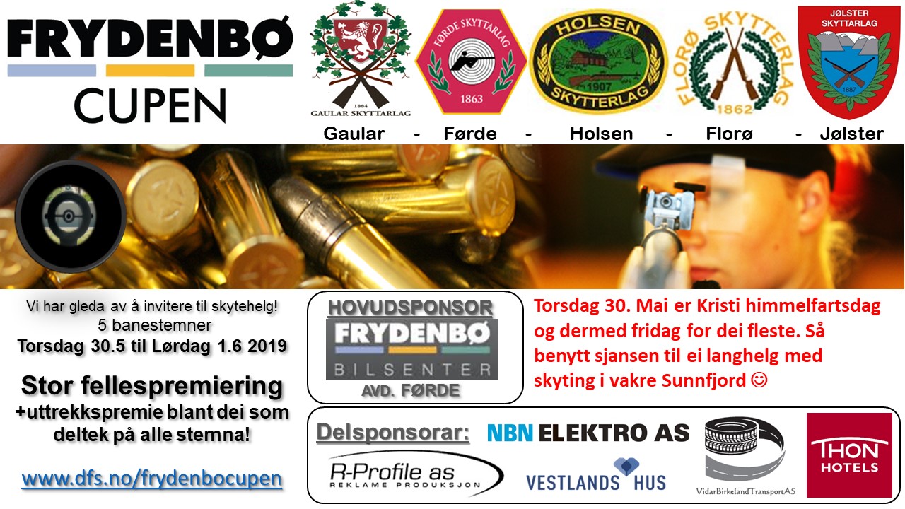 VI INVITERER TIL FRYDENBØCUPEN 2019. FØRDE - HOLSEN - GAULAR - FLORØ - JØLSTER. TORSDAG 30.05.2019 TIL LØRDAG 01.06.2019
