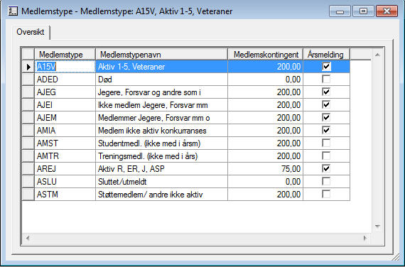 I tillegg har vi opprettet noen typer som heter "rabattert". Denne medlemstypen er tenkt brukt til familiemedlemmer som betaler en mindre kontingentsats.