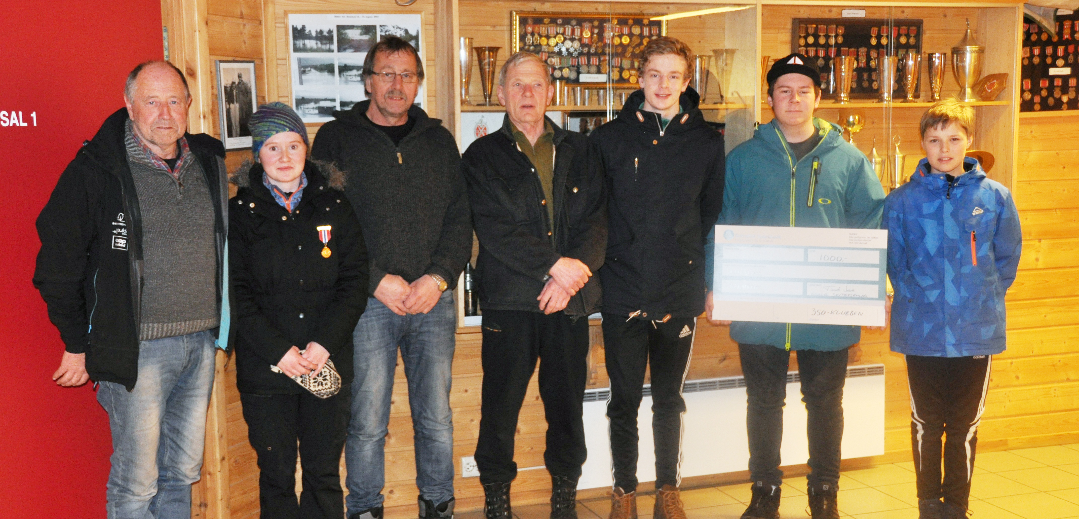 Fra venstre: Hans Rønningsgrind; Budal (vinner kl 1) - Ingrid Øyan, Singsås (nr. 5 i klasse 3-5) - Ole Steigedal, Meldal (vinner V55) - Olav Solheim, Soknedal (vinner V65) - Anders Hjerkinn Helgetun, Opdal & Midtb. (vinner kl jun.) - Henrik Volden (sjekk fra samlaget som medlem i 350-klubben i 2015) - Peder Eidem, Opdal & Midtb. (kl R), Samlagsmestere som ikke var tilstede: Knut Morten Odden, Rennebu (kl 3-5) - Bård Andre Hovin, Rennebu (kl 2) - Inge Skamfer, Rennebu (kl V73) - Lars Jr. Halland (kl ER) FOTO: privat